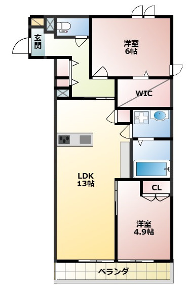 LDK 13.4帖 1室/洋室 6.0帖 1室