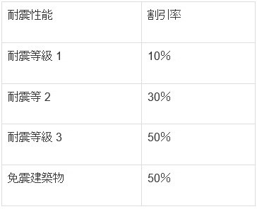 ただし、これから住宅購入を検討する場合、耐震性能が優れている建物には割引が適用されます。詳細は下表をご覧下さい。