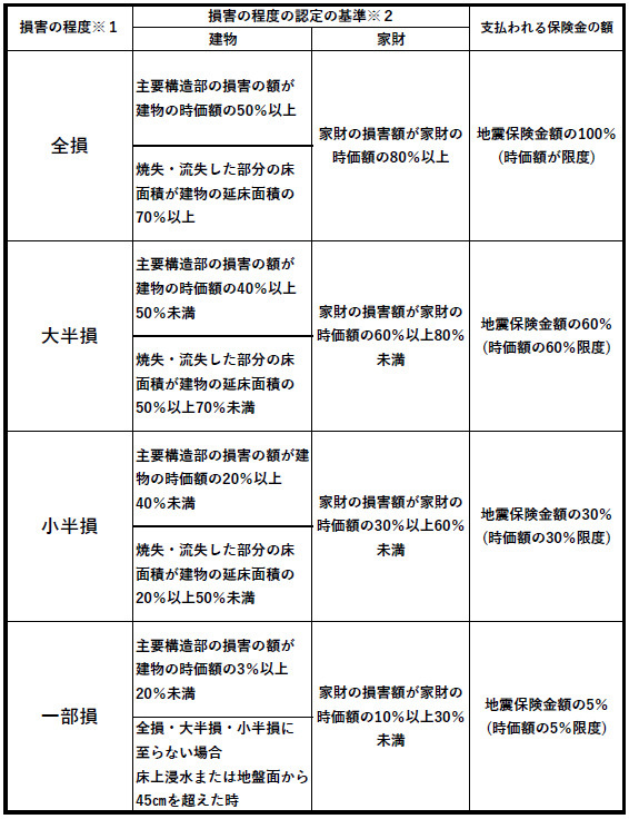 ※2建物と家財はそれぞれ別に損害の程度が認定されます。