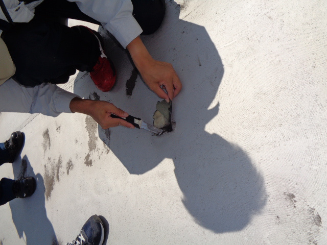 ↑アスベスト事前調査。ある箇所の塗料をサンプル採取しアスベストの含有を検査します。